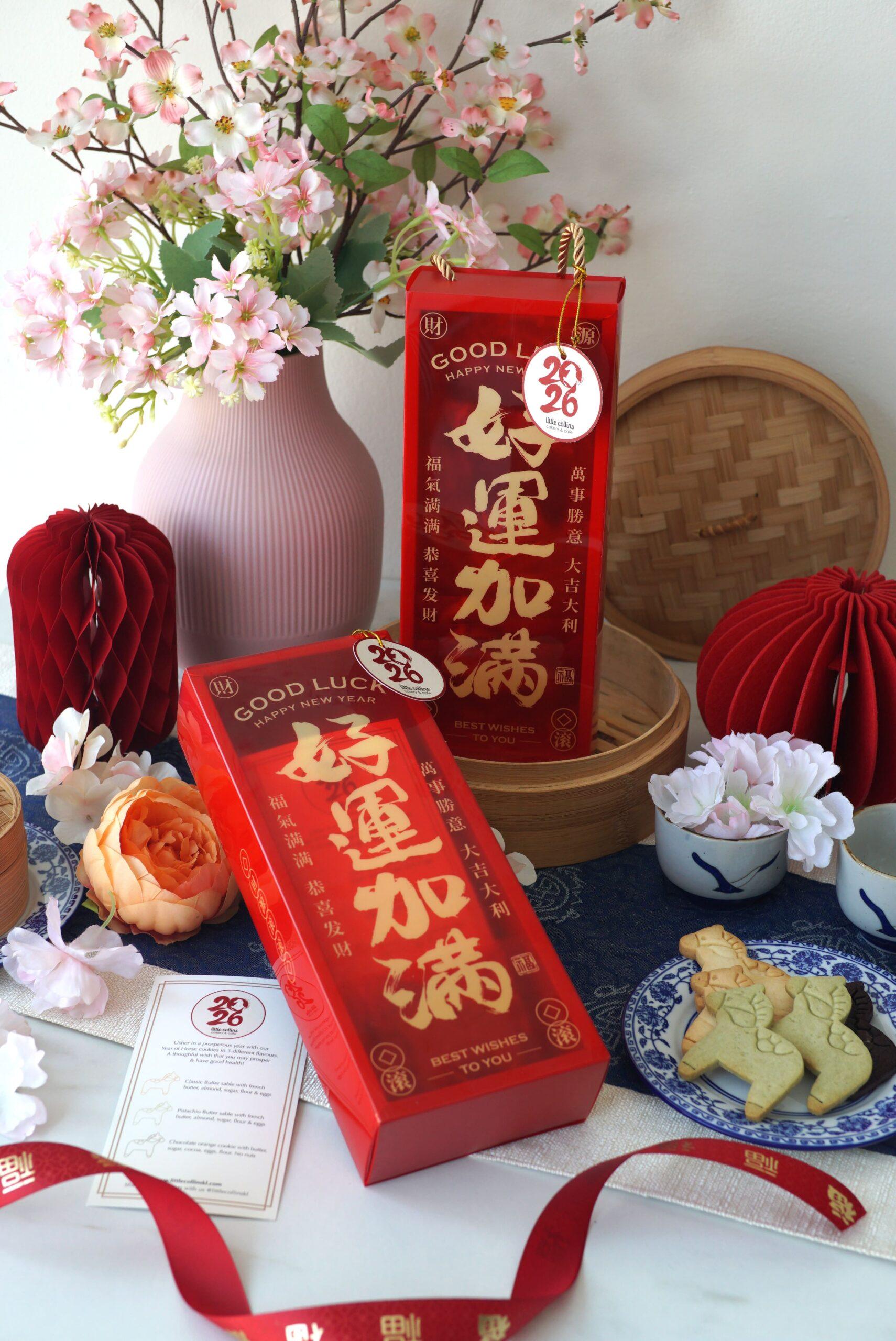 Double the blessing, double the prosperity! A perfect gift bag filled with 2 cookie jars & a Happy Horse cookie (random flavour) to give loved ones and family. Our cookies are home baked with love and made fresh to order.